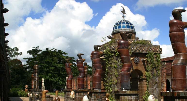 Por falar de suas obras e inspirações, o artista possui dois temas muito comuns retratados em suas obras, a natureza e o sexo. É possível, também, ver o símbolo de um arco e uma flecha em diversas esculturas do artista, e também nas paredes, chão e jardins. Esse símbolo representa o orixá Oxóssi.
